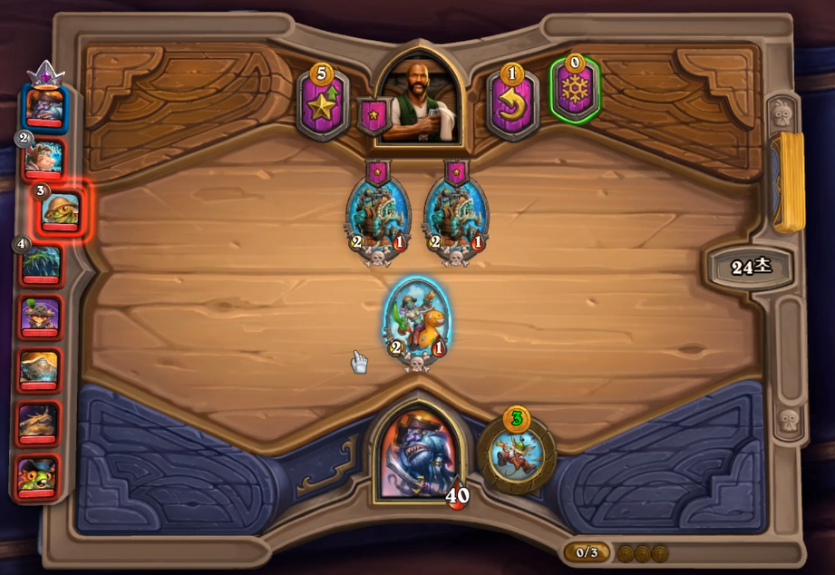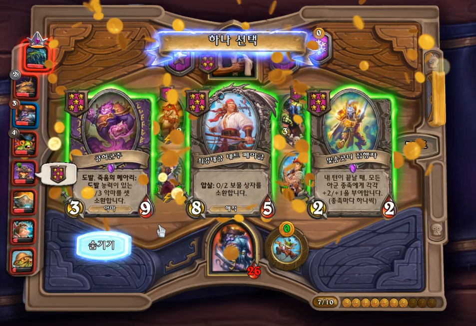새로운 패치스의 영웅 능력(4골드)은 무작위 해적을 가져오고, 해적을 살 때마다 영웅 능력의 비용이 1씩 감소합니다.