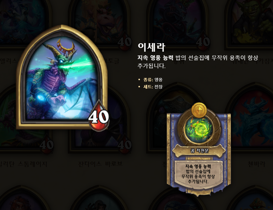 - A급 영웅(필드 개입력이 높은 영웅) -> 요그샤론, 리노 잭슨, 캘타스 선스트라이더, 조지, 이세라, 노즈도르무, 테스 그레이메인, 춤추는 다릴, 밀리피센트 마나스톰, 라카니슈