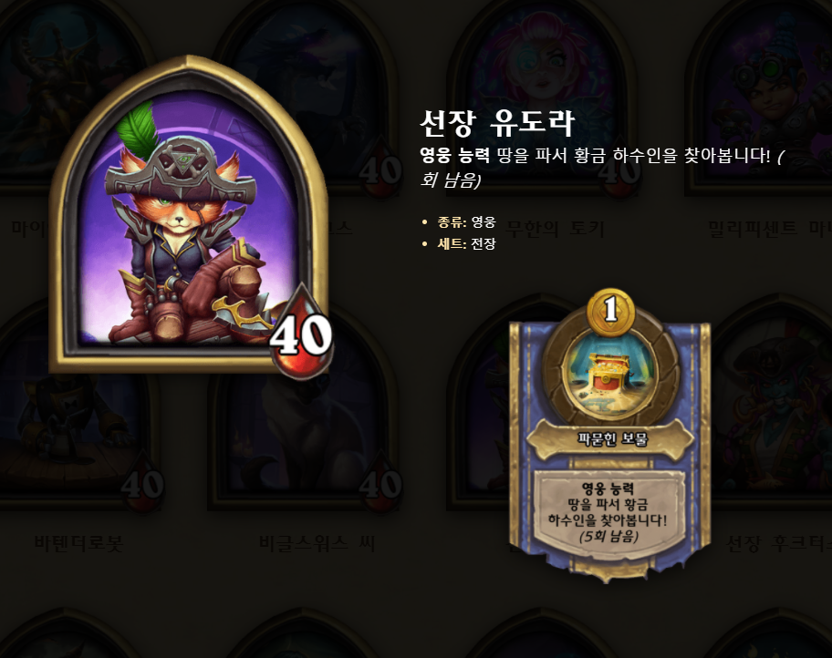 리메이크된 영웅으로, 영웅 능력을 고려할 때 해적 덱을 반드시 가야하는 영웅입니다. 종족 로테이션에 관계없이 해적덱만 맞추면 되는데, 해적 사이클 돌리기 좋고, 황금 카드도 맞추기 좋아 비슷한 류의 이세라와 비교했을 때 더 좋다고 생각합니다. 다만, 해적덱 자체가 들창코의 유무가 중요하고, 용 덱이나 멀록 덱, 야수 덱보다 한참 후반 포텐도 밀리는 점들이 있어 C+급이라고 생각했습니다.