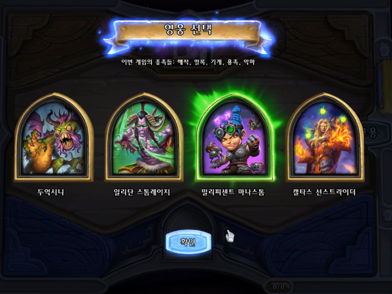 난이도가 높지 않은 영웅이기 때문에 바로 플레이 리뷰를 시작하겠습니다. 이번에는 아시아 서버에서 플레이했고, 운 좋게 1등을 차지한 기계 덱입니다^^;