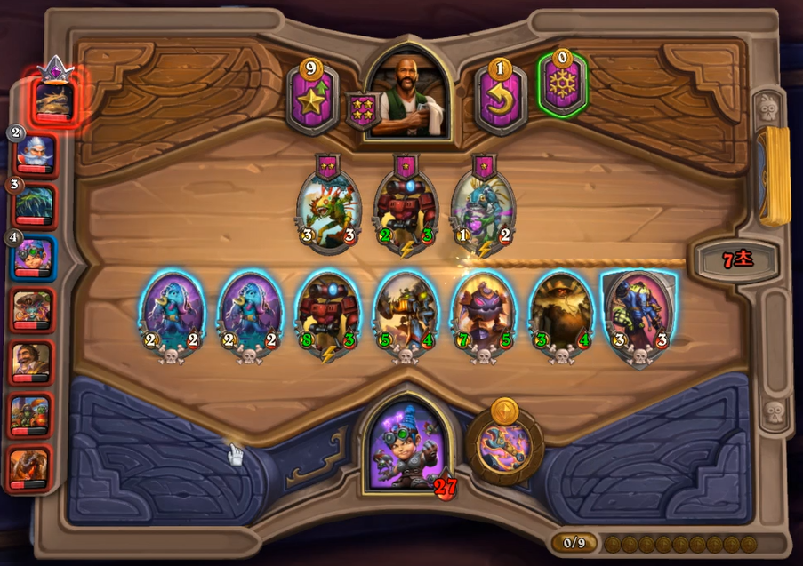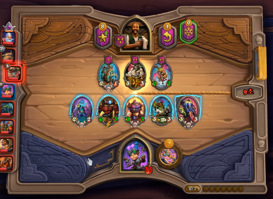 7 턴 하수인 상점입니다. 레벨 업을 하였고, 느조스의 피조물을 구입했습니다. 이정도면 최고의 스타트라고 생각합니다ㅎㅎ;