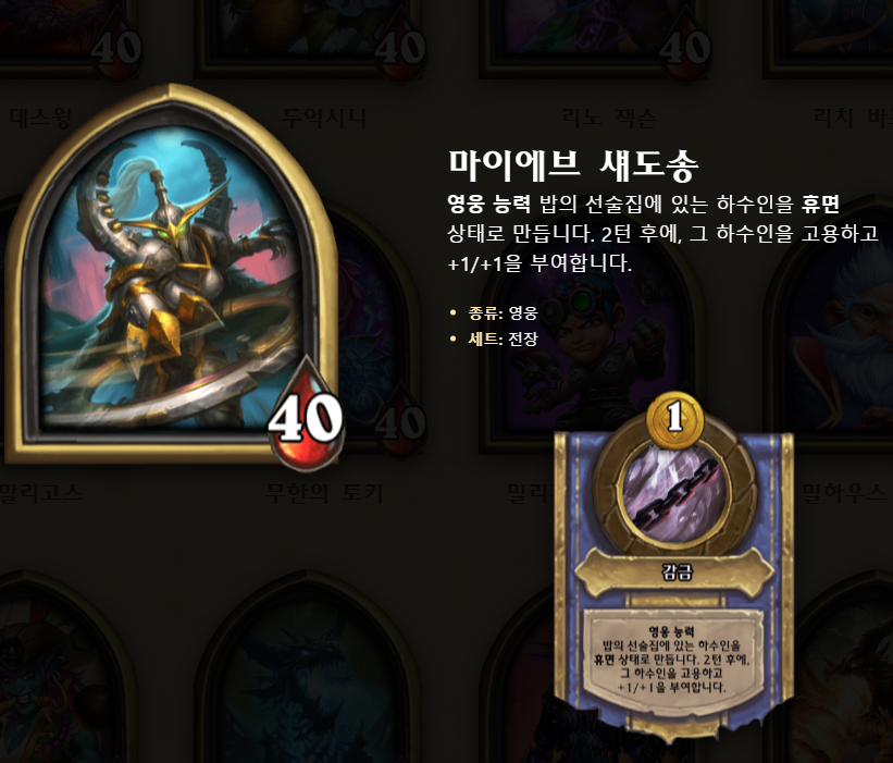 마이에브 섀도송은 써본 입장에서 라팜식 운영을 해본 결과 상당히 좋았습니다. 5성, 6성 발견에 맞춰서 1성 하수인을 황금 카드로 만들 수 있고, 이전에 하수인 상점이 묶이던 부분을 버프 시켜주면서 떡상했다고 생각합니다.