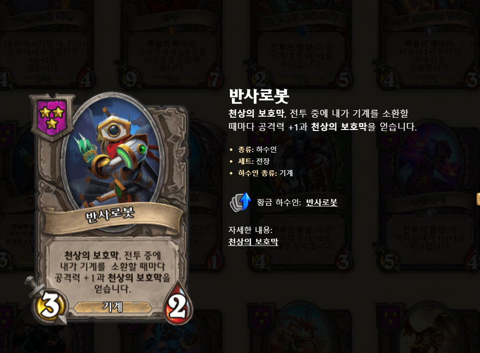 공략 글 3탄에서도 말했듯 기계 덱은 이번 해적 덱 패치로 인해 힘이 많이 빠졌다고 생각했는데, 여전히 강력하다고 생각합니다.(천보 덱 힘이 빠졌을 뿐 기계 덱은 강력합니다.) 최근 메타가 패스트 4 레벨, 5 레벨이지만, 기계 덱을 하면 4 레벨에서 머무르면서 하수인들에게 안정적으로 버프를 줄 수 있어 무난한 운영이 가능합니다. 1등은 못하더라도 안정적으로 2,3등을 할 수 있는 근본 덱이라고 생각합니다.
