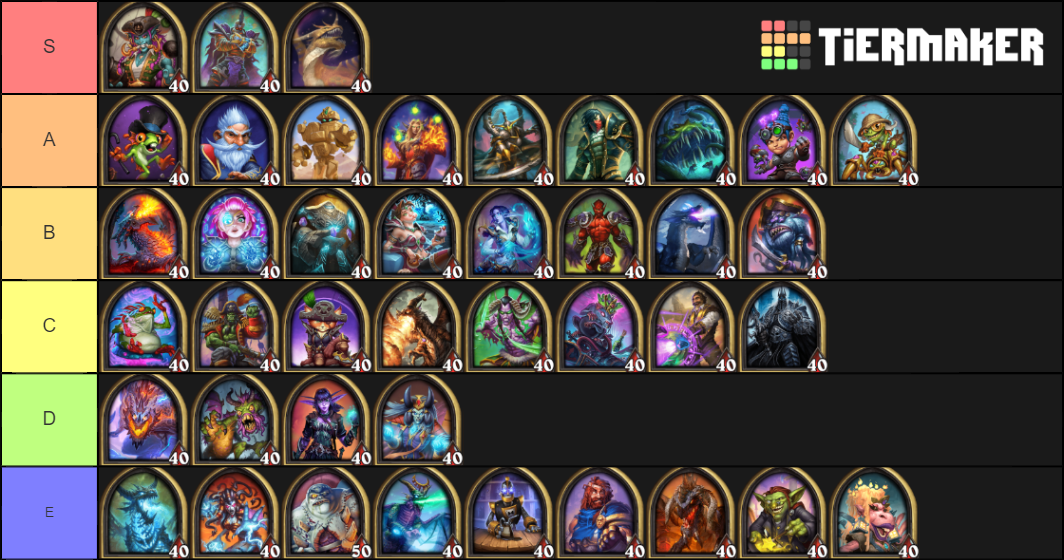 하스스톤 전장 12500++) 영웅 순위, 티어 리스트(2020년 6월 20일 기준)