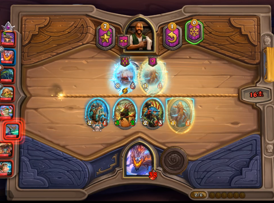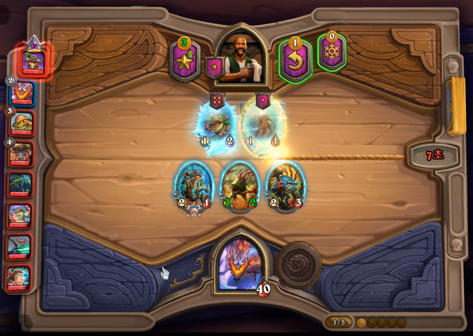 7 골드 : 영웅 능력 + 6 성 하수인 구매 + 다른 하수인 구매