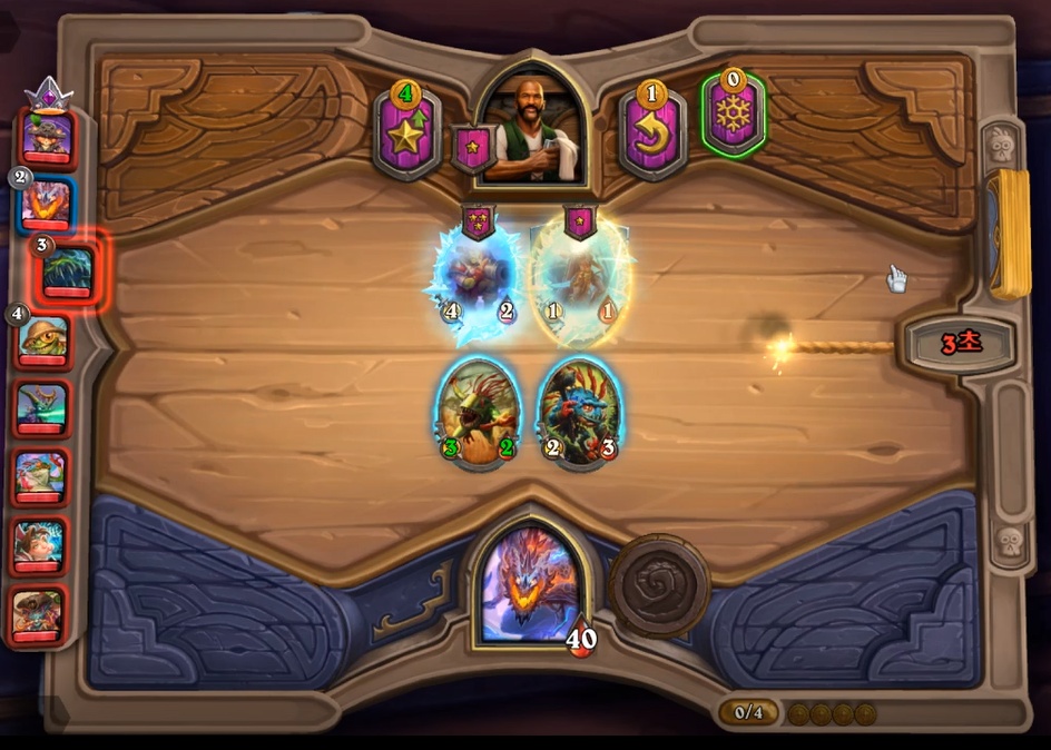 4 골드 : 하수인 구매 + 영웅 능력(3성 하수인)